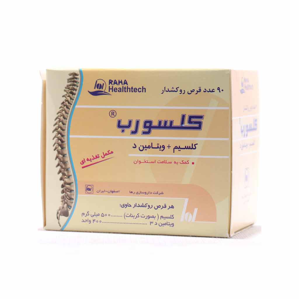 کلسورب یک مکمل تغذیه‌ای حاوی ۵۰۰ میلی‌گرم کلسیم (به صورت کربنات) و ۴۰۰ واحد بین‌المللی (IU) ویتامین D3 در هر قرص است. این ترکیب به منظور تأمین نیازهای روزانه کلسیم و ویتامین D3 طراحی شده و به حفظ سلامت استخوان‌ها، دندان‌ها و عملکرد عضلات کمک می‌کند.